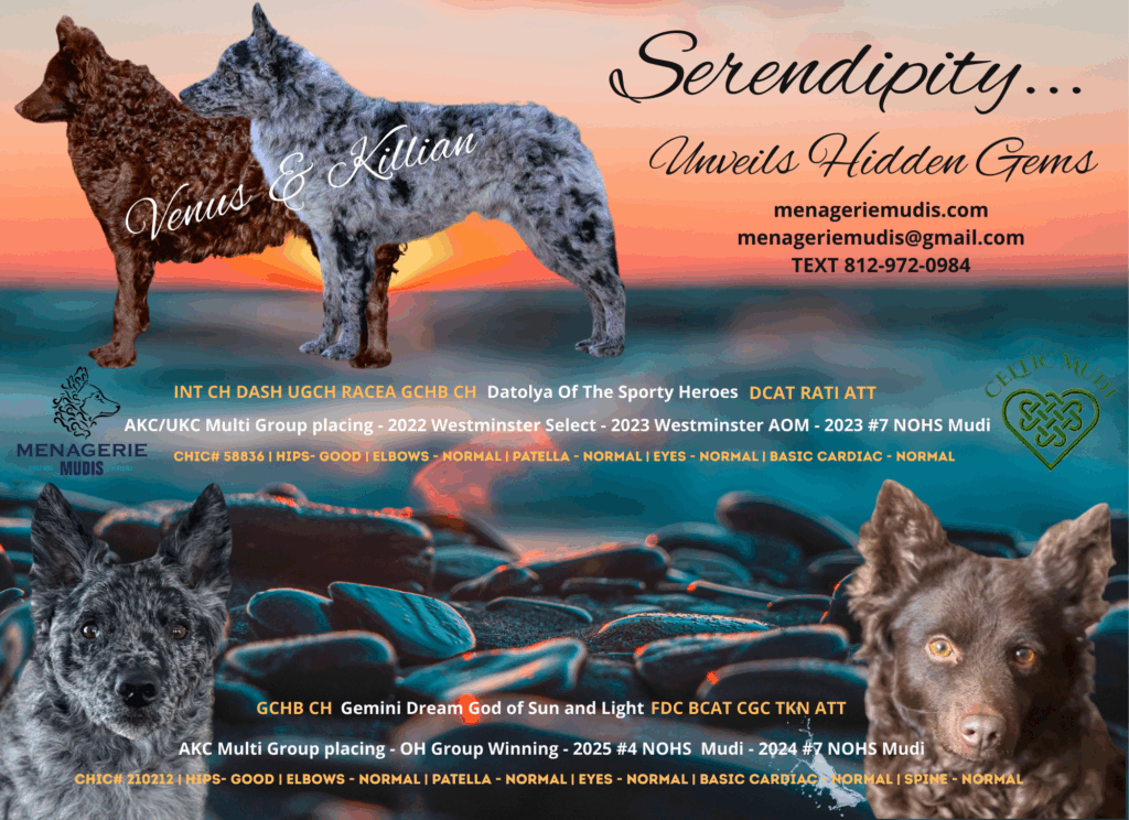 We are overjoyed to introduce our newest litter from Venus & Killian Both parents are accomplished champions with excellent health clearances, and this pairing is truly something special.